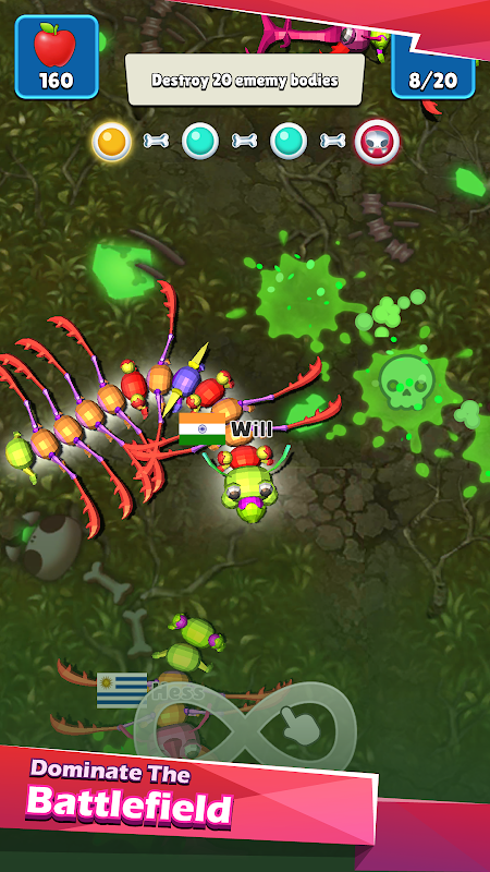 যুদ্ধে যোগ দিন এবং আইও এরেনায় সমস্ত বাগ খাও - কৃমি এবং সাপ স্লাইদার।