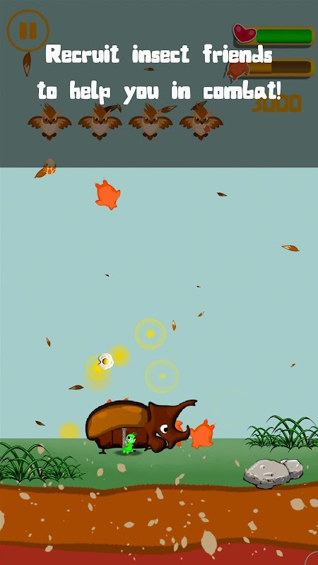On the day you open this app, a hero is born for the world of bugs, and that hero's name is...Hiro! Your bug hero will recruit the help of the insect kingdom to take on the biggest bullies in town, the birds! But it won't be easy, beware of strange egg-laying foes!