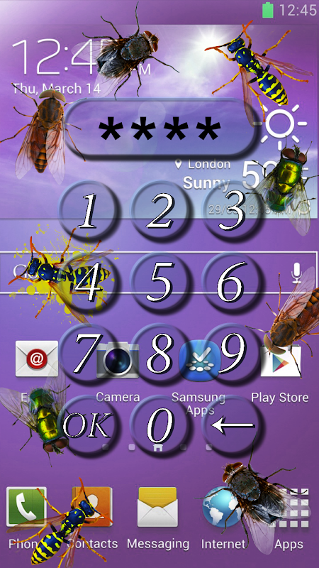 Bug lock screen prank with effects generated in the Open Gl. Bug lock screen prank is a fun and free application for entertainment purposes. You can use the application to decorate your phone screen. Bug lock screen prank is very easy to use. You can choose from a zip lock or PIN. Inside of the application you will find beautiful backgrounds.
