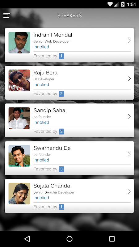• Mark any agenda or speaker as favorite and receive notification before the session starts