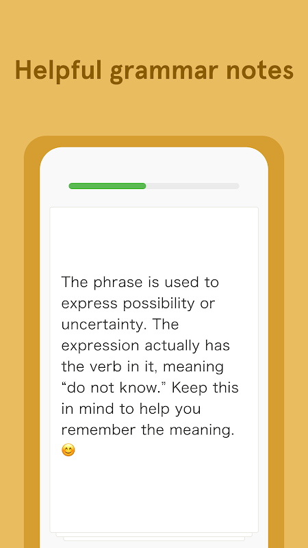 এই জাপানি ভাষা শেখার অ্যাপটি JLPT N5 থেকে JLPT N4, JLPT N3, JLPT N2 এবং JLPT N1 পর্যন্ত যেকোনো স্তরের শিক্ষার্থীদের জন্য ব্যাকরণের ব্যাখ্যা এবং পাঠ প্রদান করে।
