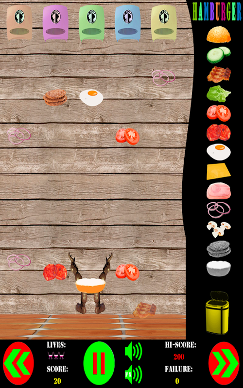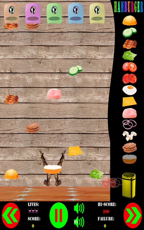 - Si el ingrediente que tienes que coger, toca el suelo, te contara un fallo y son acumulativos, si acumulas tres fallos perderás una vida.
