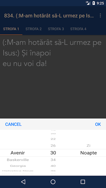 Felul মধ্যে যত্ন এখানে afişate cântările Poate ফাই personalizat modificând fontul, dimensiunea textului Sau থিম। এখানে disponibile Doua teme: "Zi থেকে" Si "Noapte"।