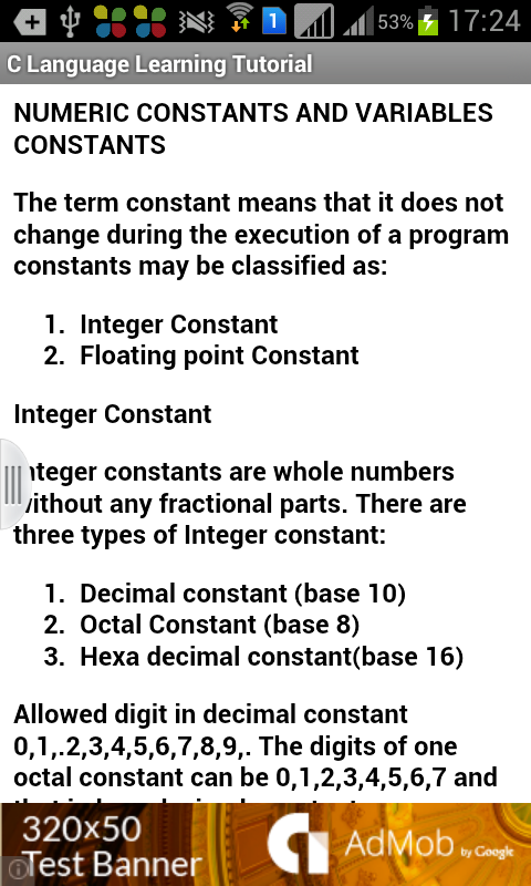 একটি অ্যাপ্লিকেশান যে তার ব্যবহারকারীদের বুনিয়াদি "সি ভাষা" শিখতে এবং সবচেয়ে জনপ্রিয় প্রোগ্রামিং ভাষা এক মৌলিক পরিষ্কার ক্ষমতা