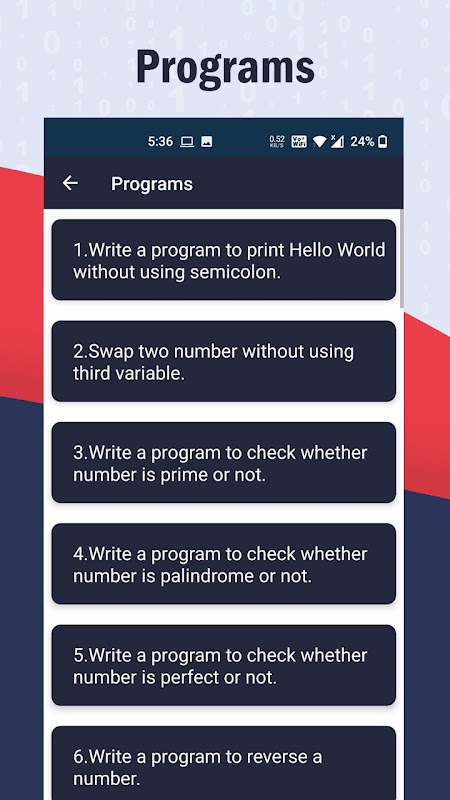 আপনি কি একটি বিরামবিহীন সি প্রোগ্রামিং লার্নিং অ্যাপটি সন্ধান করছেন, এই সি লার্নিং অ্যাপটি প্রাথমিকভাবে সি ভাষার মূল বিষয়গুলিতে পূর্ণ। আপনি সি ভাষার যে কোনও ধরণের পরিণতি পরিচালনা করতে বা পরাস্ত করতে সক্ষম হবেন। আপনি যদি কোনও সি প্রোগ্রামিং সাক্ষাত্কারে উপস্থিত হন তবে সি লার্নিং অ্যাপটি আপনার জন্য অবশ্যই একটি অ্যাপ্লিকেশন। আপনি যখন এই সি ল্যাঙ্গুয়েজ অ্যাপ্লিকেশনটি শুরু করছেন, কোডিংয়ের জন্য প্রোগ্রামিংয়ের পূর্বের জ্ঞানের প্রয়োজন হয় না এবং এই সি লার্নিং অ্যাপটি প্রাথমিকভাবে যারা কোড শিখতে এবং আইটি বিকাশকারী ক্ষেত্রে তাদের ক্যারিয়ার তৈরি করতে চান তাদের জন্য উপযুক্ত। সি প্রোগ্রামিং ল্যাঙ্গুয়েজ একটি অত্যন্ত শক্তিশালী প্রোগ্রামিং ভাষা যা অ্যাপ্লিকেশন বিকাশের বিস্তৃত রয়েছে।