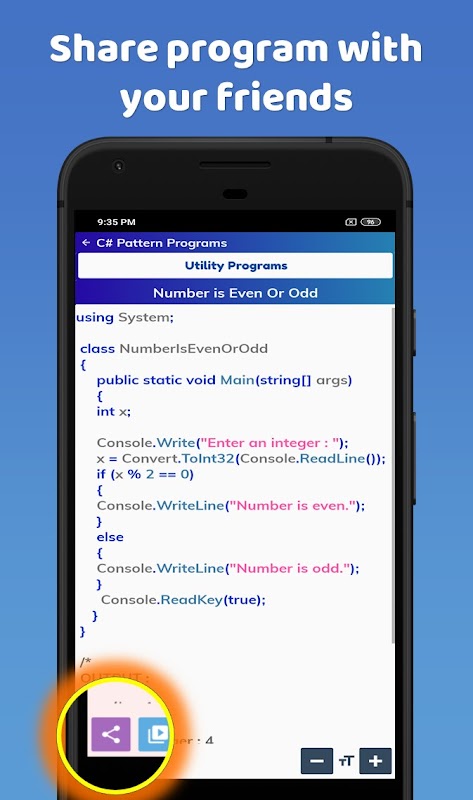 এই অ্যাপটি প্যাটার্ন এবং অন্যান্য সি # প্রোগ্রামগুলিতে পূর্ণ। এগুলি ছাড়াও, সি # প্রোগ্রামিংয়ের সাথে সম্পর্কিত প্রচুর স্টাডি স্টাফ রয়েছে।