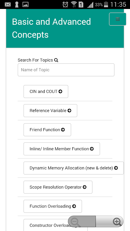 I am representing an Android Application name C++. Basically i have created this application for the students, who are pursuing the computer course related to computer application field and purpose of this application is to make them clear about all the basic concept of this field.