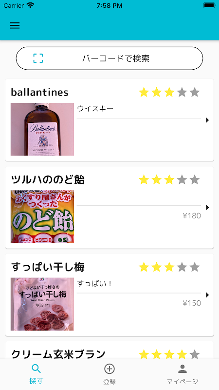 バーコードと紐づけて商品情報(テキスト、画像)を登録することができます。
