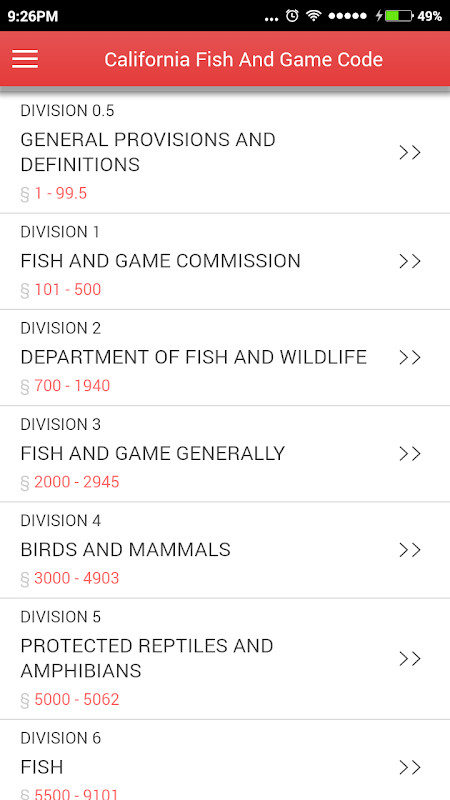 এই অ্যাপ্লিকেশন আপনার ডিভাইসের উপর ক্যালিফোর্নিয়া মাছ এবং খেলা কোড সম্পূর্ণ টেক্সট উপলব্ধ