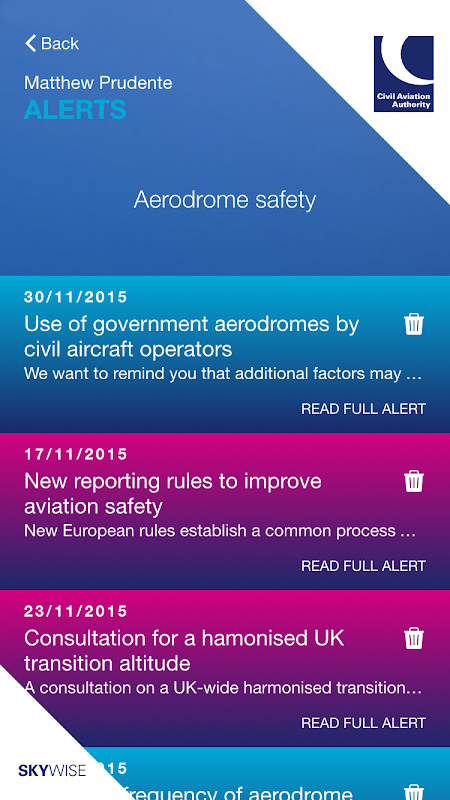 উপযোগী সংবাদ ও সিএএ থেকে সতর্কতা. আপনি প্রয়োজন বা পেতে চান সতর্কতা এবং সংবাদ জন্য আপনার নিজের পছন্দ সেট. App বৈশিষ্ট্য আপনার app টি সতর্কতা পছন্দ উপর ভিত্তি করে বিজ্ঞপ্তি এবং ইমেল সতর্কতা ব্যবস্থাপনা ধাক্কা.