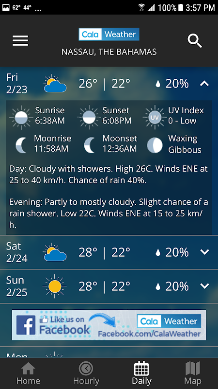 CalaWeather অ্যাপ আপনি আমাদের দেখার অঞ্চলের জন্য সর্বশেষ আবহাওয়া দেয়.