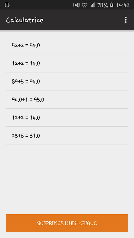 To see the calculation history you have done, click on "History" in the action bar.