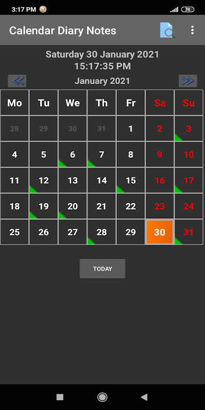 ✔ নোট সহ তারিখগুলি একটি সবুজ ত্রিভুজ দিয়ে হাইলাইট করা হয়।