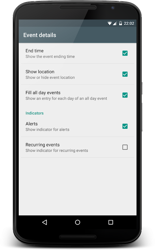 The Android calendar widget is home screen widget for your Android device. It displays a list of upcoming calendar events so that you can easily have a glimpse at your upcoming appointments. Tap on an entry to jump right into your calendar.