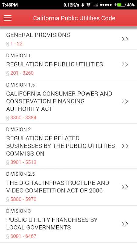 এই অ্যাপ্লিকেশন আপনার ডিভাইসের উপর ক্যালিফোর্নিয়া পাবলিক ইউটিলিটি কোড সম্পূর্ণ টেক্সট প্রদান করে.