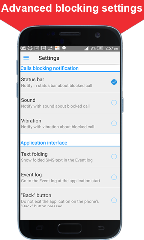 ✔️ Option to notify about blocked call by sound.