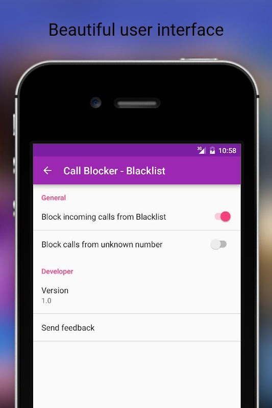 এই যে কোনো সংখ্যা যে আপনি উত্তর দিতে চাই না থেকে কল ব্লক জন্য সেরা অ্যাপ্লিকেশন. এটা সহজ এবং ব্যবহার করা সহজ. আপনি ব্ল্যাকলিস্ট মধ্যে কোনো সংখ্যা যোগ করতে পারেন অথবা আপনি আপনার ফোন থেকে যোগাযোগ চয়ন করতে পারেন. তারপর যে কোনো কল এই সংখ্যার থেকে প্রবর্তিত অবিলম্বে ব্লক করা হবে. কলারের জানি না হবে যে আপনি তাদের ব্লক করা হয়, তখন তারা কেবল অনুমান করতে পারেন যে আপনি ব্যস্ত.