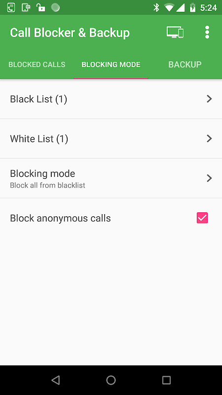 কল ব্লকিং এবং কল লগ ব্যাকআপ 1.1.16