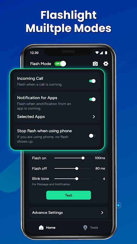 ✨ Various bright flashlight modes: The flash notifications app provides a variety of flashlight modes such as Rear flash, SOS flash, DJ flash, etc. Users can easily switch between different flashlight modes to suit their various needs.