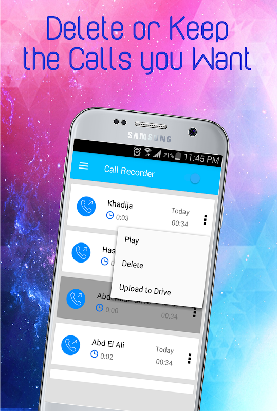 If you decide that a call recorder conversation is important, save it and it will be saved in call recording application.You can activate automatic call recorder pro Menu feature.