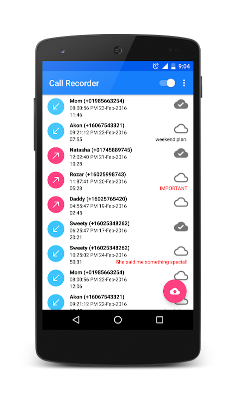 • Please note that some handset does not support “Call Recording” functionality. It’s the recording API/driver problem of the manufacturer of the handset. If you are facing such kind of problem, at first try different "Audio Source" from "Settings". If none of them works for you let us know about your handset model by send a mail, so that we can make a list of unsupported device (https://docs.google.com/document/d/1KEyMjz8jNgh62kY3a4onGYWrCfyd-p6e7fCThqlpBz0/edit?usp=sharing). PLEASE DO NOT GIVE BAD RATING OR REVIEW FOR THIS UNEXPECTED PROBLEM. If you are facing problem of low voice of other party, then we have a trick for you, turn on loudspeaker while talking. Please give us feedback about any kind of improvement of our product.