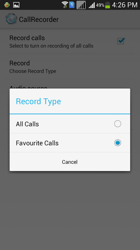 ★ Favorites – Call Record enable only for selected contacts.