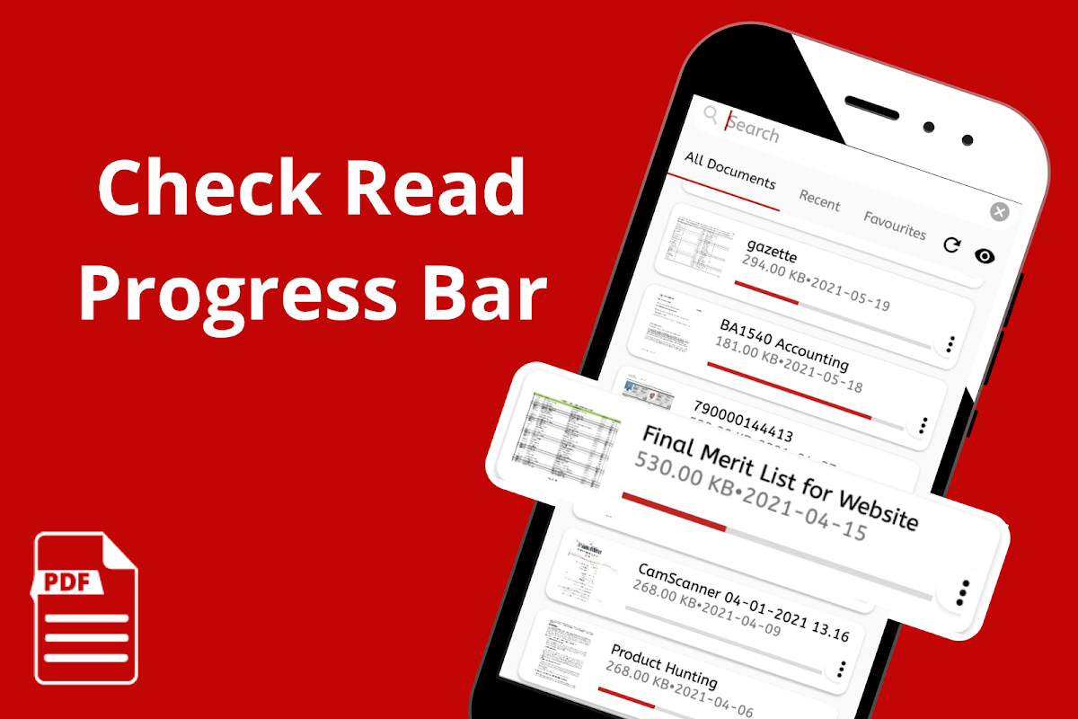 সবচেয়ে শক্তিশালী বৈশিষ্ট্য যা আপনাকে যেকোনো ডকুমেন্টের পঠনের অগ্রগতি পরীক্ষা করতে সক্ষম করে। অ্যান্ড্রয়েডের জন্য পিডিএফ রিডার ডকুমেন্টের নীচে লাল রেখা দেখায় যা আপনাকে মনে করিয়ে দেবে যে আপনি কত পৃষ্ঠা পড়েছেন এবং কত শতাংশ ডকুমেন্ট এখনও পড়ার জন্য বাকি আছে।
