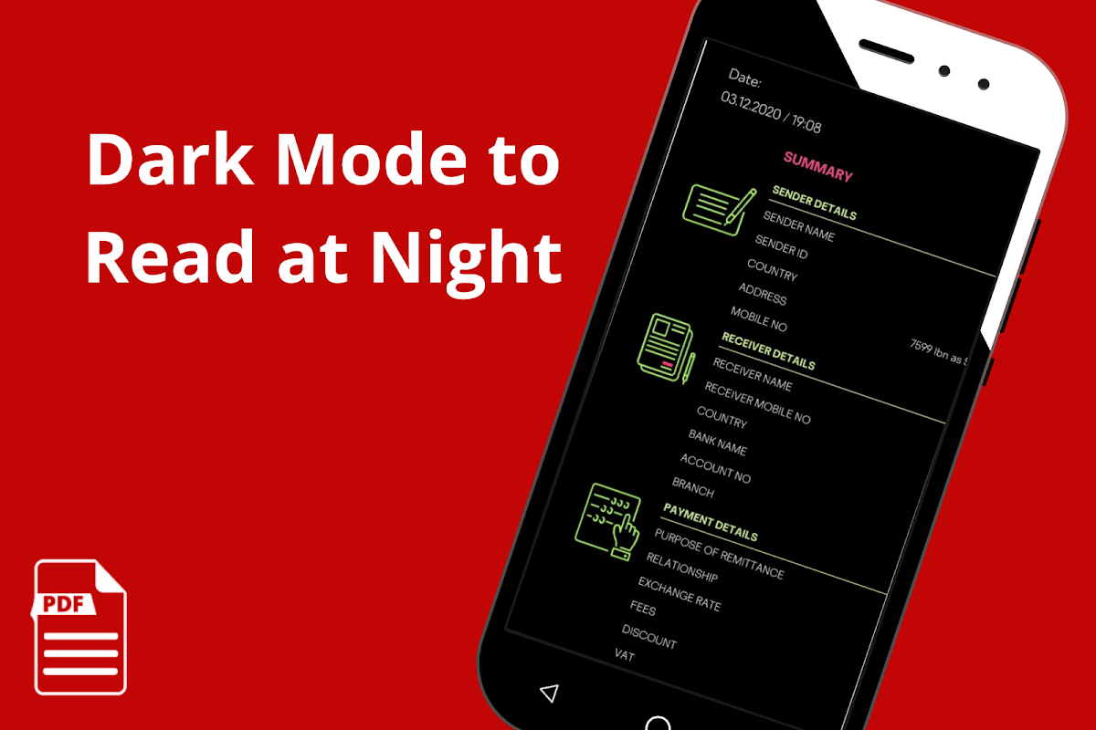 সেরা PDF Reader আপনাকে ফাইল পড়ার জন্য আরামদায়ক ভিউ প্রদান করবে। পড়ার ক্ষমতা বাড়ানোর জন্য আপনি আপনার PDF ডকুমেন্টের নাইট মোডও পরিবর্তন করতে পারেন। Android ফ্রি অ্যাপ্লিকেশনের জন্য PDF Reader ব্যবহার করে, আপনি আপনার ফোন থেকে সরাসরি অবাঞ্ছিত ফাইলগুলি মুছে ফেলতে পারেন এবং দ্রুত অ্যাক্সেস করার জন্য প্রয়োজনীয় ফাইলগুলিকে প্রিয় হিসেবে চিহ্নিত করতে পারেন। আপনি যে পৃষ্ঠা থেকে পড়া ছেড়েছিলেন সেই পৃষ্ঠা থেকে আপনি একটি PDF ডকুমেন্ট পড়া চালিয়ে যেতে পারেন।