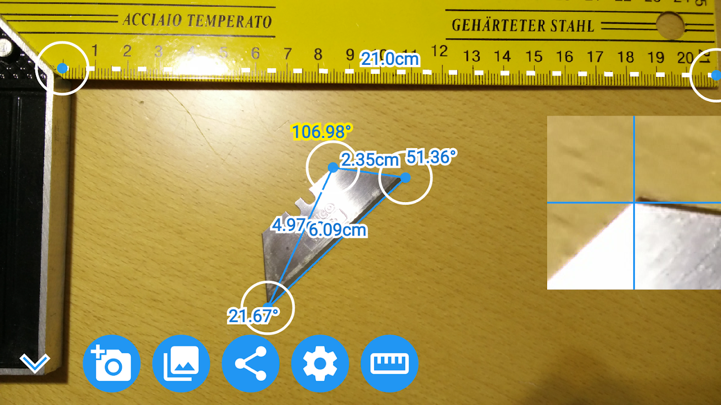 মেজার কোণ, lenghts এবং ছবি এলাকাটিতে ক্যামেরা দিয়ে বা গ্যালারি থেকে নেওয়া