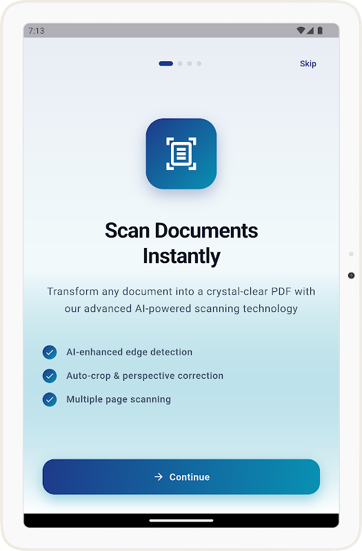 পিডিএফ-এ উচ্চ-মানের ক্যামেরা স্ক্যানিং: নথি, রসিদ, নোট এবং হোয়াইটবোর্ডের স্পষ্ট, পেশাদার-গ্রেড স্ক্যান ক্যাপচার করুন। আমাদের উন্নত স্ক্যানিং প্রযুক্তি নিশ্চিত করে যে আপনার পিডিএফগুলি ক্রিস্প, পঠনযোগ্য এবং প্রতিবার নিখুঁতভাবে ফর্ম্যাট করা হয়েছে।