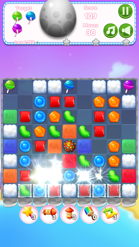 ✔ Match 3 same candies to collect the candies and to complete each level. Match 4, 5 same times and other cross same candies to get special booster candies.