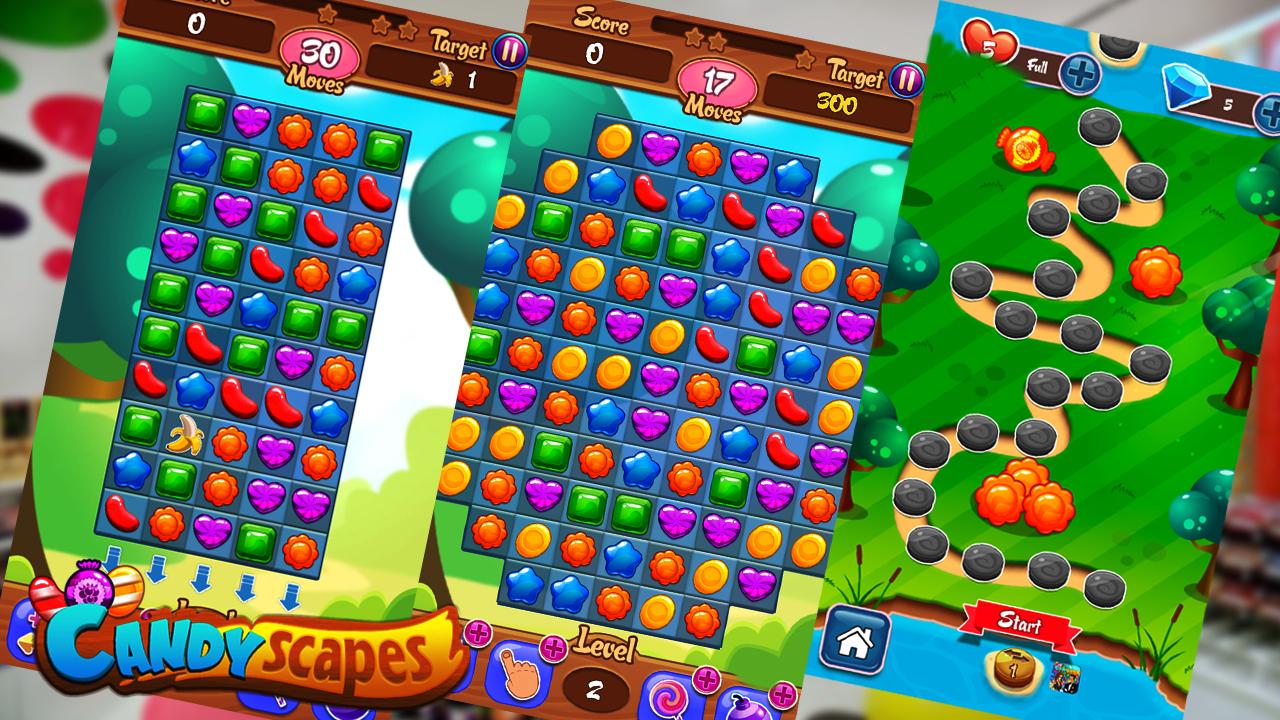 A new Match 3 Fun is here with amazing Candyscapes, in which you have to go through the mysterious world, full of twisty fun and adventure. Get the new power ups with magical boosters by solving the multiple puzzles full of incredible challenges and test your brain sharpness in real time. Just switch and match three identical candies to solve the mystery and clear up the jewel board in no time. Start your adventurous journey from a simple match 3 puzzle mission and build your way toward more difficult and challenging missions. Discover the new delicious world which is full of exciting match 3 puzzles and solve all the brain teasers as soon as possible. Join the most addictive fun and adventure of your life and beat all the challenges brainteasers with comfort and ease.
