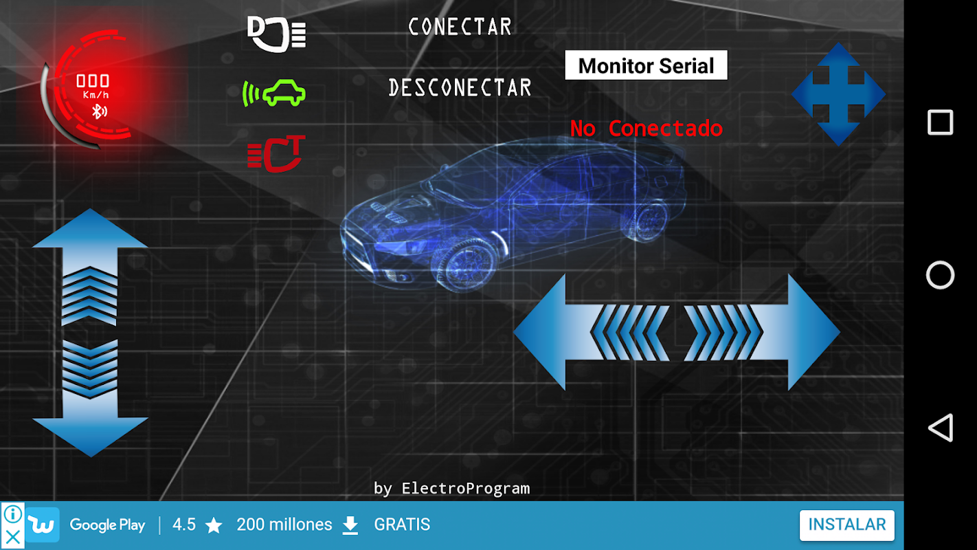 Permite controlar prototipos móviles creados en plataforma Arduino que usan módulos bluetooth tanto como los conocidos HC -05 y HC -06.