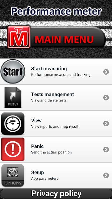 গাড়ি পারফরমেন্স মিটার বিনামূল্যে একটি আবেদন যে GPS এবং অ্যাকসিলরোমিটারটির সম্মিলিত ব্যবহার ক্যাপচার, দোকান এবং প্রদর্শন করে যেমন গতি, ত্বরণ, ইঞ্জিন আউটপুট এবং গতিরোধ শক্তি হিসেবে গাড়ির, গাড়ী বা মোটর সাইকেল এর বিভিন্ন শারীরিক পরামিতি, যা হল, কর্মক্ষমতা গাড়ির. এছাড়াও সব তথ্য এবং ভ্রমণ রুট সংরক্ষণ এবং পরে রুট GPX বা সব ফলাফল রিপোর্ট শেয়ার করতে দেখা যেতে পারে, রপ্তানি. এছাড়াও একটি দ্রুতিমাপক হয়.