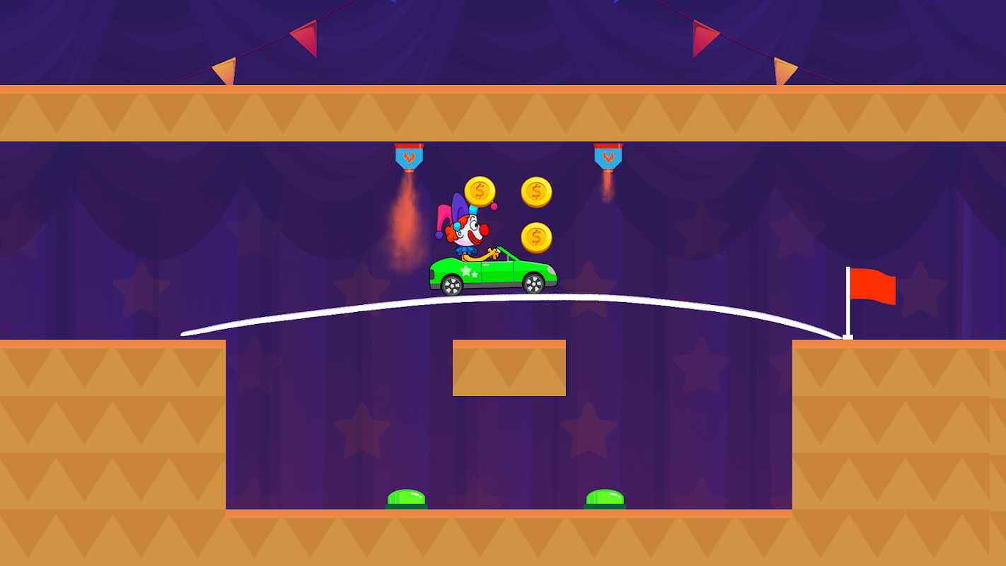 Can the car and the clown make it to the finish line? It all depends on your intelligence and ingenuity! Use brush strokes to make the bridge stronger. You can only draw the line once, be careful not to damage the car, stay away from the dangers! The difficulty of Car Puzzle will increase gradually through the levels, hundreds of interesting levels are waiting to challenge you.