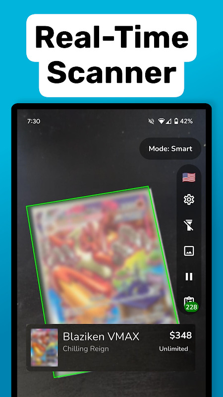 আমাদের রিয়েল-টাইম এআই স্ক্যানার দিয়ে অবিলম্বে আপনার পোকেমন কার্ড স্ক্যান করুন। holos, স্ল্যাব, হাতা, যে কোন দিক, এবং এমনকি আংশিকভাবে occluded সঙ্গে কাজ করে!