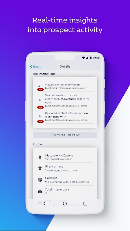 The system, enabled by a tappable business card, allows salespeople and networkers to instantly exchange contact information and share personalized sales content. In return, they receive a detailed record with all available contact and business info through data enrichment, as well as real-time insights on how leads engage with the shared content. This way users can reach out to the right person at the right time, sensibly increasing their sales efficiency.