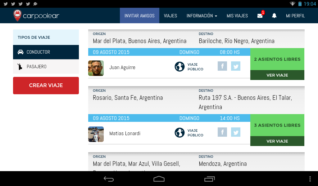 বিজ্ঞাপিত যখন Carpoolear সম্প্রদায় করুন! বেশি 70,000 আর্জেন্টিনীয় যারা যেহেতু 2013 মিলিত মানুষ ও আপনার ভ্রমনের আরও ভাল pasala আর্জেন্টিনা সর্বত্র শহরগুলির মধ্যে গাড়ী ভ্রমণের ভাগ ... ভাল আপনি এবং আপনার পকেট যত্ন পরিবেশ নিতে পারেন: ডি