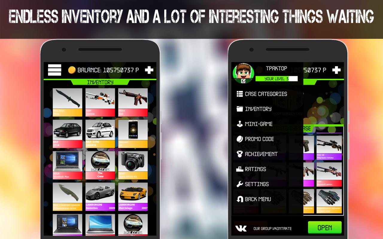 - We have interesting mini-games that you will not find in other similar applications opening cases CS:GO!