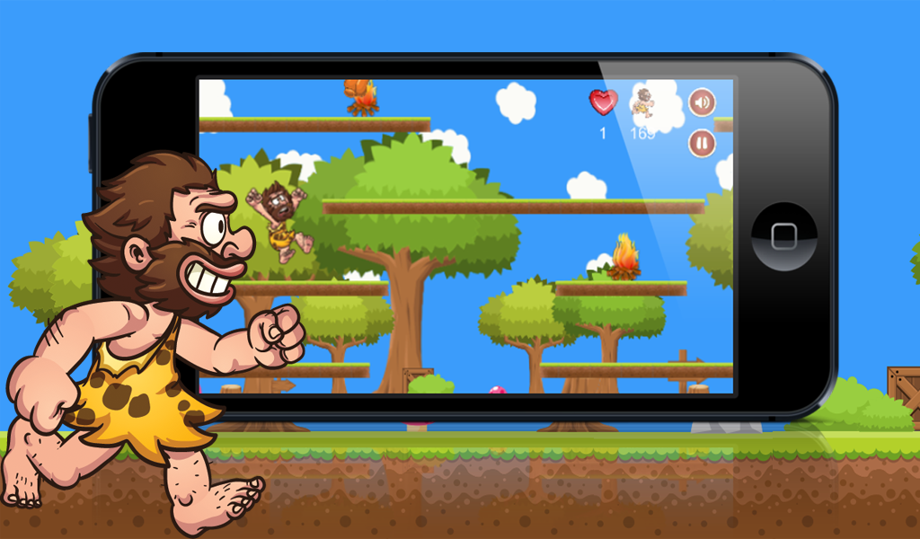 Click on the screen to make Caveman jump.