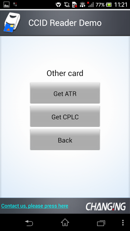 অ্যান্ড্রয়েড ডিভাইস, ইউএসবি CCID পাঠক মাধ্যমে সংযুক্ত স্মার্ট কার্ড (স্মার্ট কার্ড), কাজ এবং প্রাকৃতিক পরিচয়পত্র ও ডেবিট কার্ড প্রদর্শনী প্রদান করে.