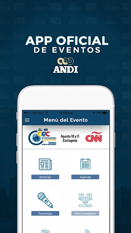 Mediante la aplicaciones Eventos Andi el participante podrá conocer toda la información de los eventos : Noticias, Actividades, Ponentes, Participantes y demás.
