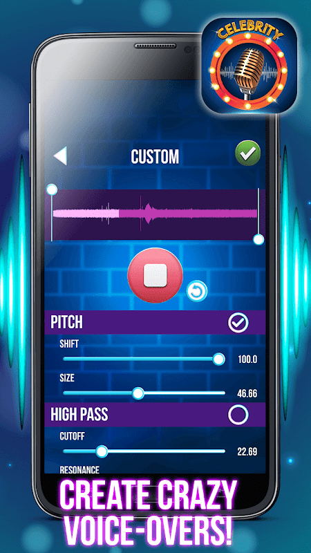 Get this unique and crazy sound editor app that will make you sound completely different! You can mess with your friends – they will never recognize your voice! 🌟🎤 Celebrity Voice Recorder : Audio and Sound Changer 🎤🌟 is the best ringtone maker and sound recorder with funny effects for sound morphing, perfect for every prankster out there! It's the greatest “voice recorder” and speech modifier on the market that will make you sound like your favorite celebs. Everything you need to make an unforgettable prank is right here! Make crazy male to female voice change in outgoing call and funny voice transformations, make your speech faster, slower, low or high pitched... There are so many incredible audio effects so you better hurry up to try them all out! This crazy voice editor app is available for free download and it is just what you've been waiting for!