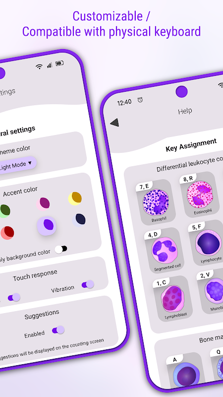 • বিভিন্ন গণনা মোড (ডিফারেনশিয়াল ডব্লিউবিসি গণনা, রেটিকুলোসাইট গণনা, অস্থি মজ্জার গণনা, কার্যক্ষমতা, নিউবাউয়ার চেম্বার, আরবিসি অস্বাভাবিকতা, প্লেটলেট গণনা এবং আরও অনেক কিছু)।
