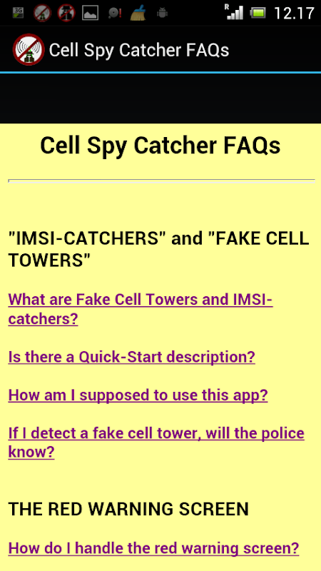 এই অ্যাপ্লিকেশান "IMSI catchers" সনাক্ত আপনাকে সাহায্য করবে (এছাড়াও "জাল সেল টাওয়ার" বা "Stingrays" বলা হয়).