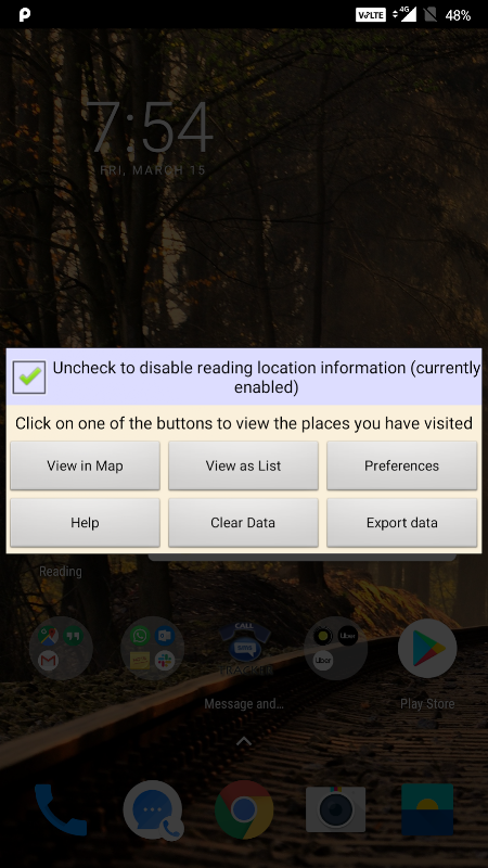 অ্যাপের বাইরে অবস্থানের তথ্য প্রেরণ করা হয় না। আপনার ভিজিটের ট্র্যাকগুলি দেখানোর জন্য এটি অ্যাপ্লিকেশনটির মধ্যেই ব্যবহৃত হয়েছে। অতএব গোপনীয়তার কোনও সমস্যা নেই।