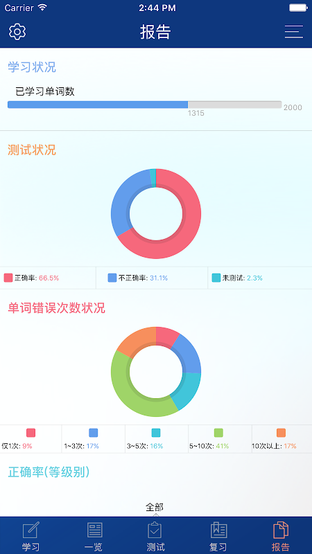 所有的学习和测验过程都有记录并用图表展示,让你对自己的学习进度一目了然!