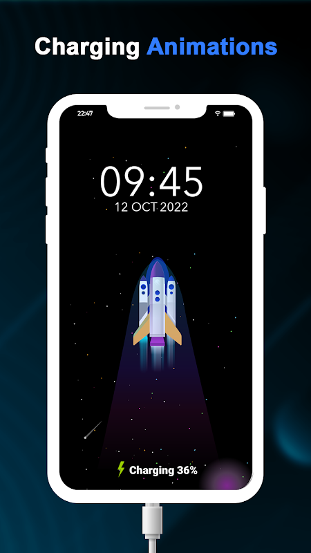 আপনি যখন আপনার লকস্ক্রীনে মোবাইল চার্জিং প্লে অ্যানিমেশন প্রয়োগ করবেন তখন একটি সুন্দর চার্জিং অ্যানিমেশন শো প্রদর্শিত হবে।