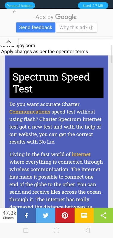 The best thing about this tool is that it is free. While most of the other speed checking tools are premium. This means that you have to pay to use the service. Charter internnet speed test provides you a complete report of your internet speed within few minutes.