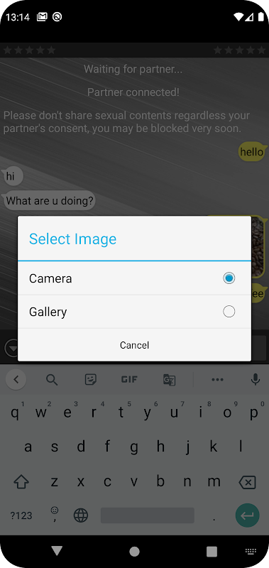 আপনি পূরণ এবং বিশ্ব থেকে বিভিন্ন মানুষের সাথে কথা বলতে পারেন. একটি র্যান্ডম ব্যবহারকারী আপনি সংযুক্ত করা হবে.